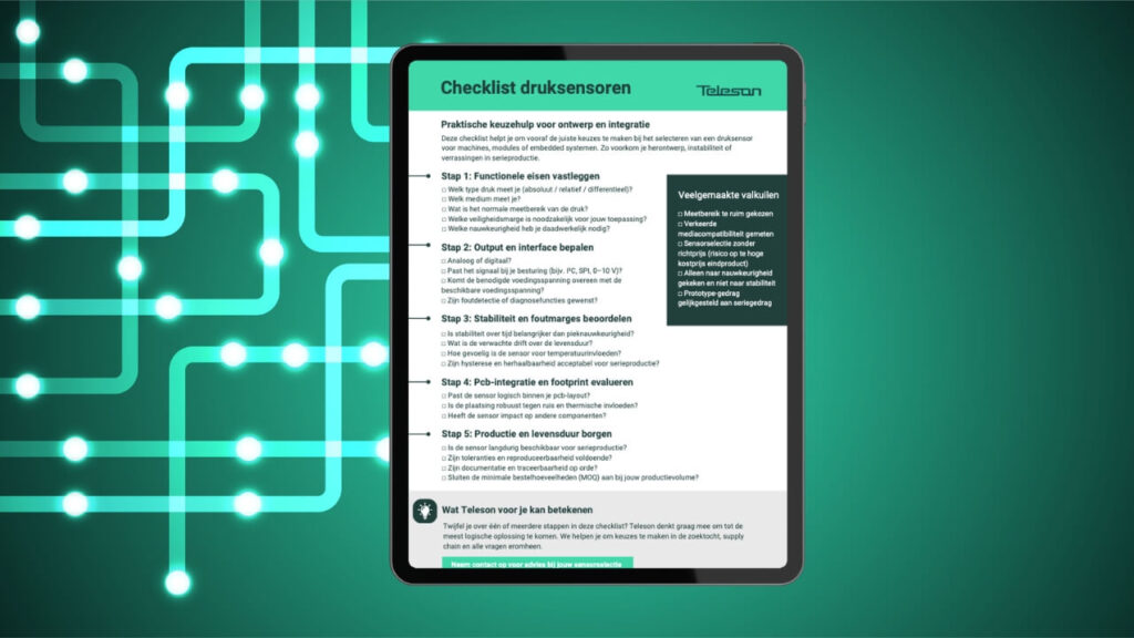 Praktische keuzehulp om vooraf de juiste keuzes te maken bij het selecteren van een druksensor.